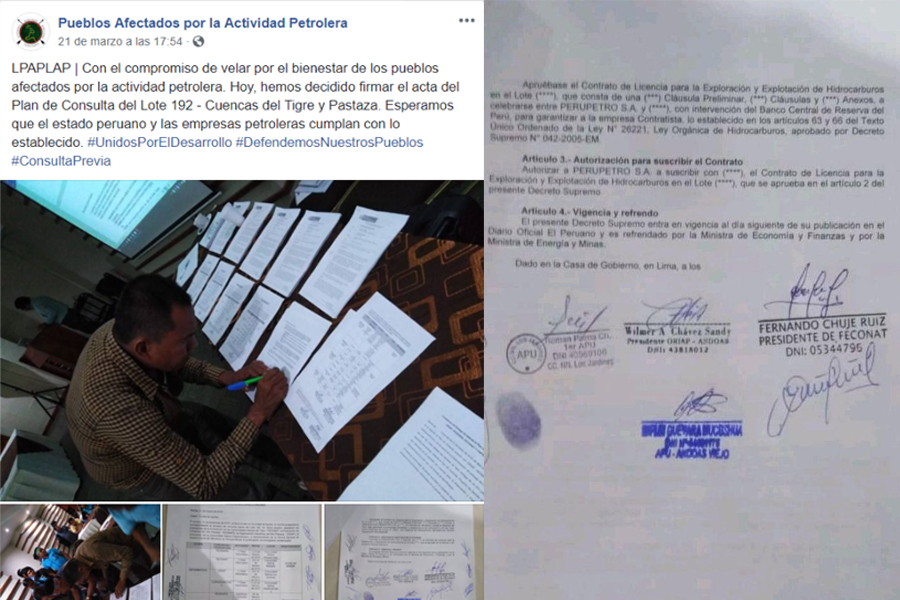 Señalan que antes de continuar diálogo preparatorio es importante que el Estado asegure derechos y seguridad ambiental en el próximo contrato petrolero del Lote 192, porque tiene rango de ley. La próxima reunión sería a inicios de mayo.