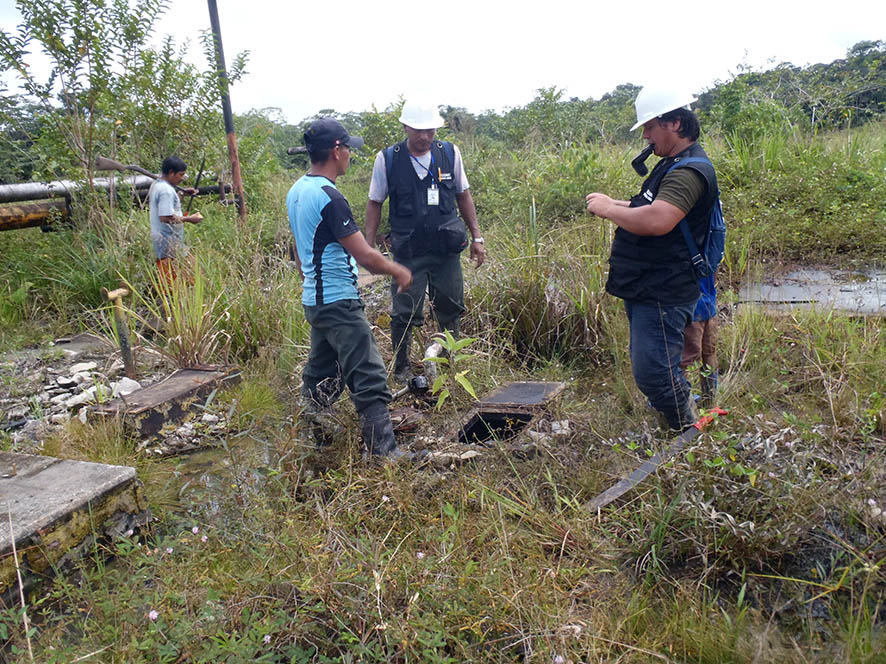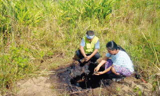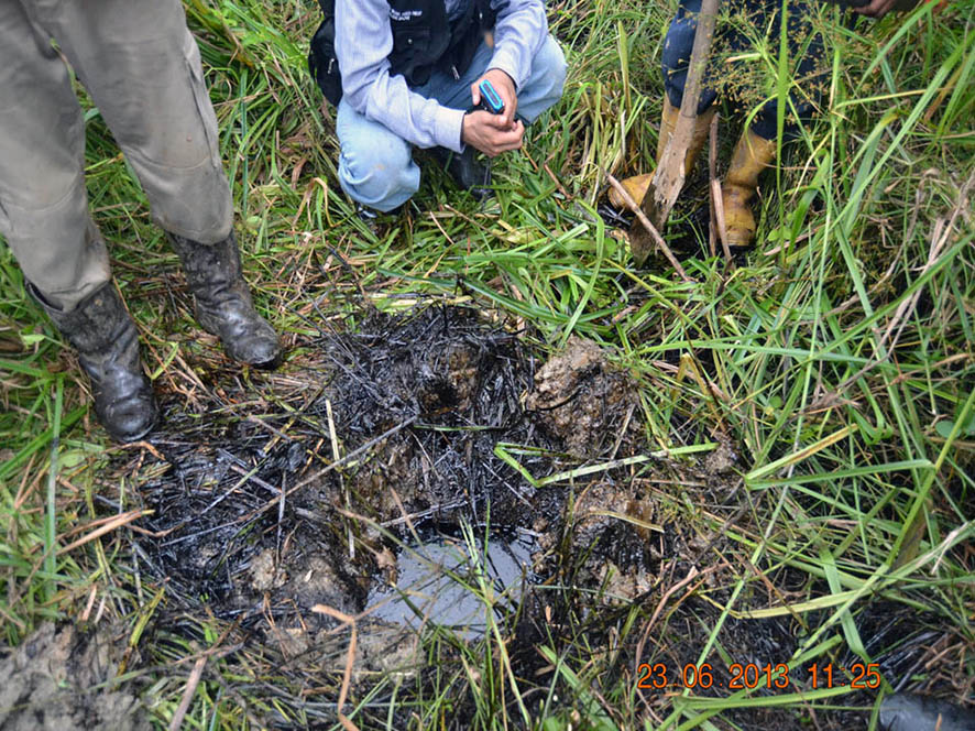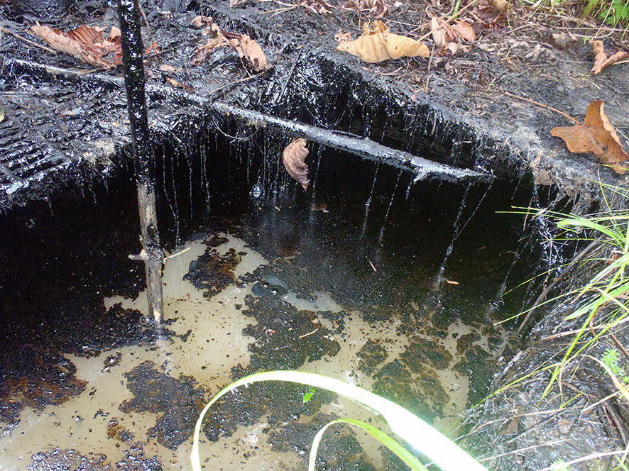 Foto de pozo con presencia de hidrocarburos a superficie abierta.