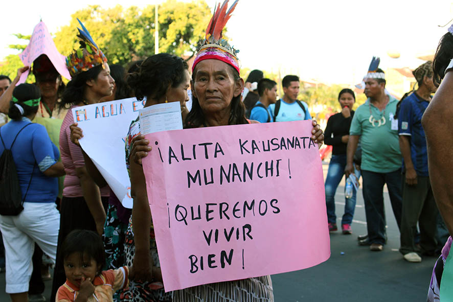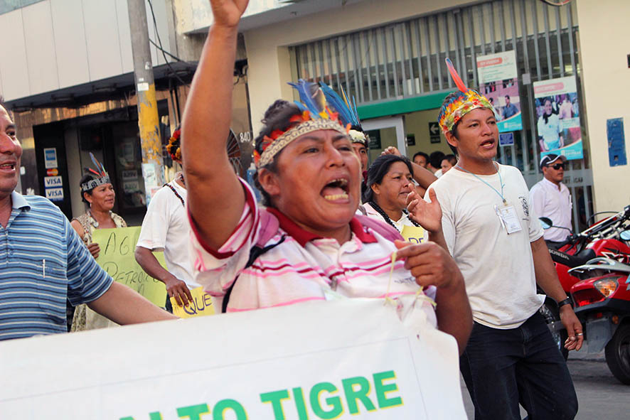 Madre indígena protesta en Iquitos. Desde octubre de 2013 exigían la declaratoria de emergencia ambiental.